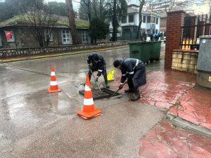 Park ve Bahçeler Dairesi ile Yol ve Bakım Dairesi Başkanlığı’na bağlı A Takımı ve İSU ekiplerinin ortaklaşa yürüttüğü çalışmalarda, cadde ve sokaklardaki V kanallar, mazgal ve menfezlerde biriken atıklar temizlenerek, suyun tahliyesi sağlanıyor. Ekipler, özellikle su geçişini engelleyen çöp, yaprak, kuru dal, toprak ve benzeri materyalleri mazgallardan çıkararak tıkanıklıkları gideriyor.